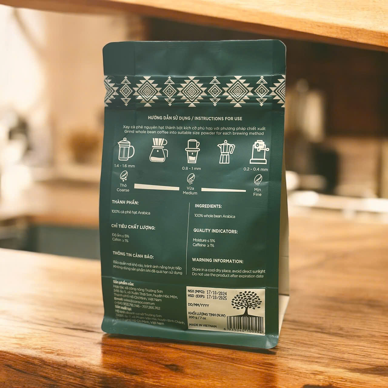 Thành phần: 100% hạt Arabica.