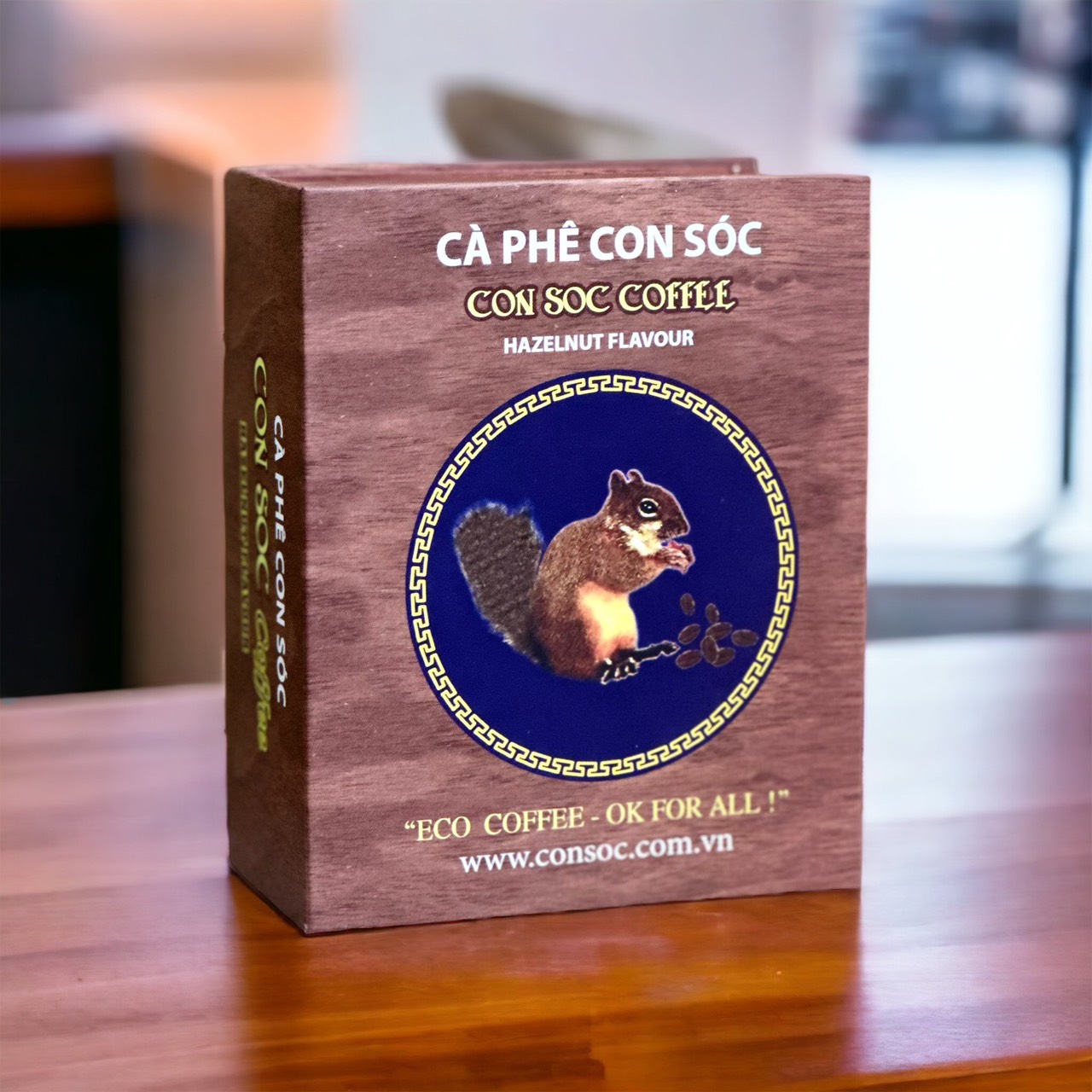 Hộp cà phê Con Sóc Nâu-Xám: 50% Arabica, 50% Robusta và Hương Hazelnut - Pha phin