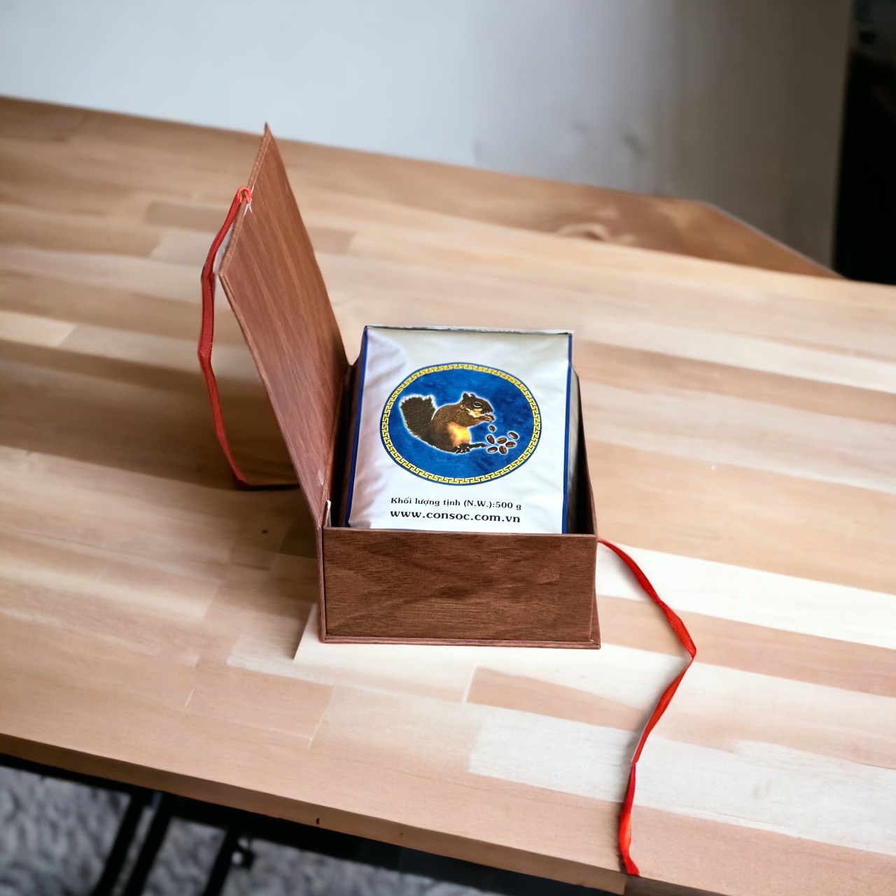 Con Sóc hộp 500gram : 50% Arabica - 50% Robusta, Hương Hazelnut